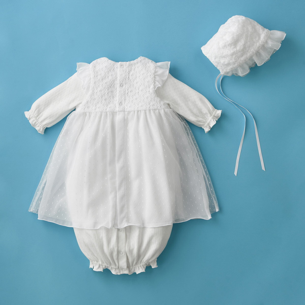 ドレスは70cmまで対応しているので、ご退院の際やお宮参り、お食い初めなどお祝いの儀式にはもちろん、ハーフバースデーなど半年前後のセレモニーイベントの際にも着てただけます。
