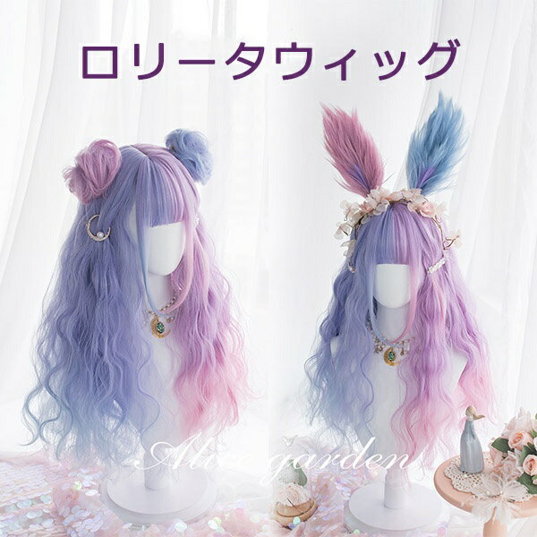 ウィッグ lolita メッシュ ロリータ風 原宿風 かつら 巻き毛 ぱっつん前髪 グラデーション グリーン ピンク ブルー レディース コスプレウィッグ 可愛い ロング 耐熱ウィッグ 文化祭 学園祭 パーティー COSPLAY コスチューム アクセサリー cosplay用 仮装 大人用 dp032n1n1n1