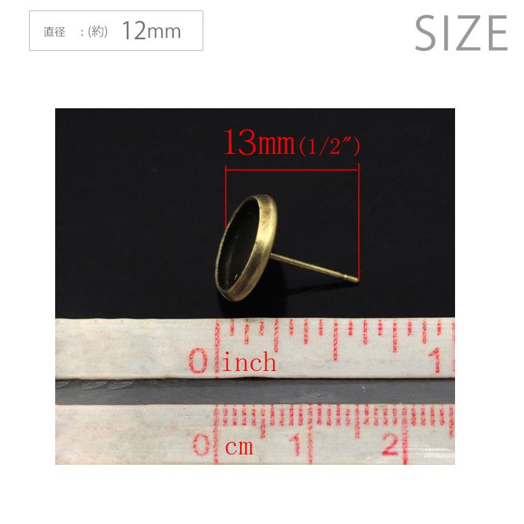 商品について 商品名 亜鉛合金製 カボション台付き ピアスパーツ カラー ブロンズトーン サイズ 直径:(約)12mm ※こちらの商品は直径10mmのカボションに合います。