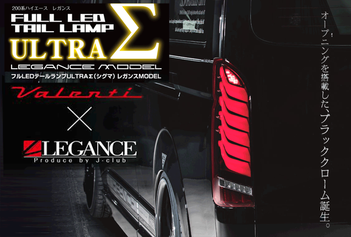 (キーワード) ハイエースLEDテール レガンステール ハイエーステール テールランプ ULTRA Σ ハイエースパーツ ハイエーステールランプ カスタムパーツ テールレンズ ファイバーテール シーケンシャル 流れるウインカー ライトバー レガンス LEGANCE VALENTI ヴァレンティ オープニング エンディング