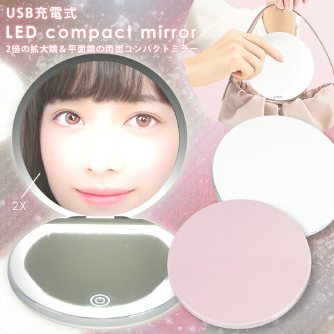 ●LEDライトに2倍の拡大鏡と平面鏡がついた両面コンパクトミラーです。
