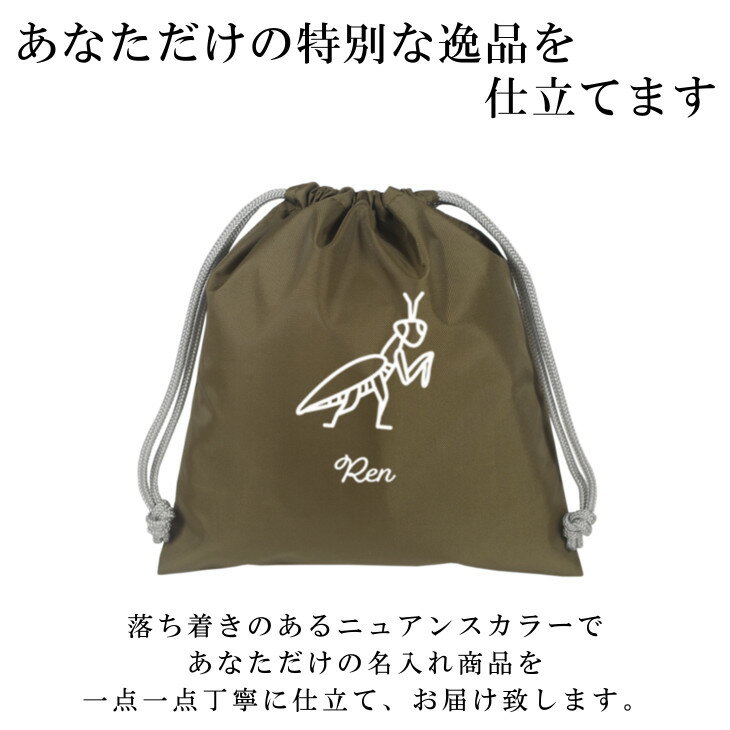 名入れ 給食袋 (巾着袋 / Sサイズ / ナイロン / カマキリ 蟷螂 昆虫 )| ノーアイロン 女の子 男の子 巾着 小さめ ランチ袋 コップ袋 歯ブラシセット メイクポーチ かわいい 入学 入園 小学校 撥水 入学準備 幼稚園 入園準備