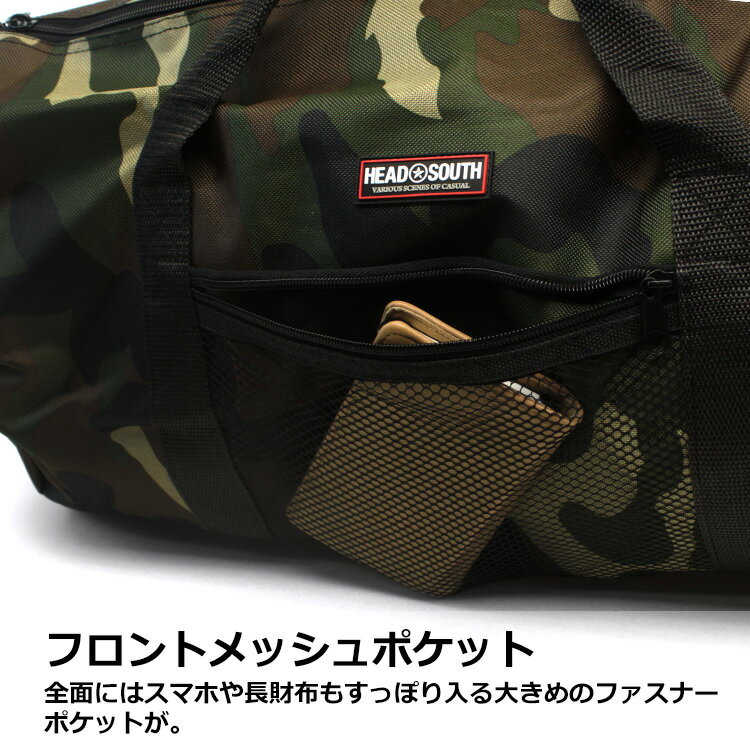 HEAD SOUTH 迷彩柄ボストン 幅51cmの大型タイプで、スポーツや旅行に大活躍するボストンバッグです。