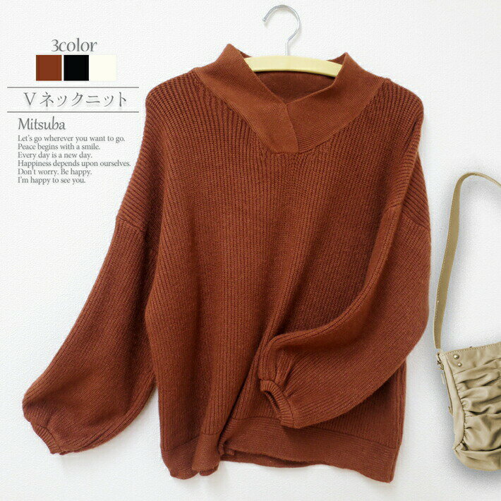 【クーポン使えます★ポイント2倍】ざっくりした伸縮性のあるVネックゆるニット★ニット セーター リブ 編み トップス 柔らかい プルオーバー ゆったり 秋冬 ケーブルニット Vネック
