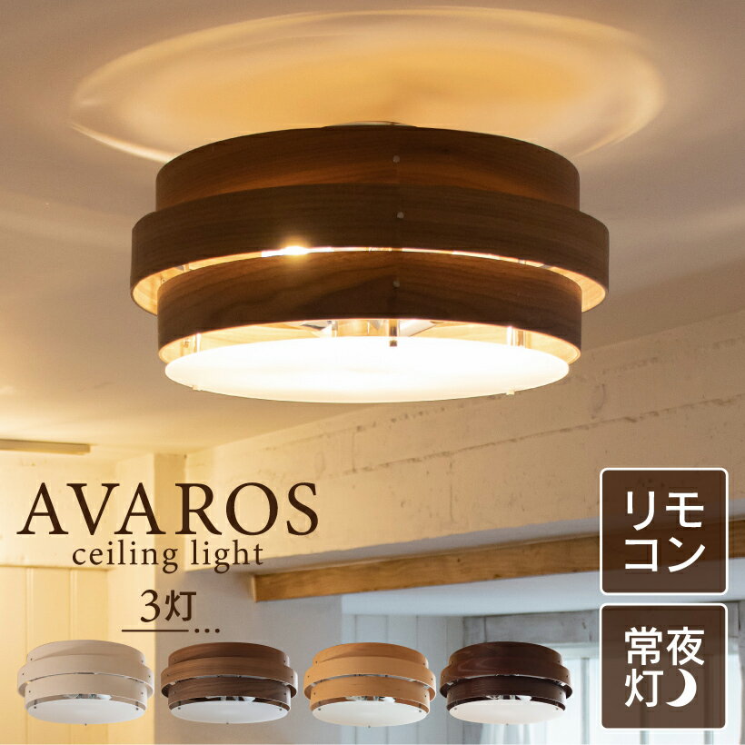 【ポイント5倍】 天然木 シーリングライト 照明 おしゃれ 3灯 木製 リビング ダイニング 寝室 北欧 カフェ ナチュラル ミッドセンチュリー 照明器具 天井照明 アイボリー ダークブラウン 8畳 明るい LED リモコン ライト Avaros アヴァロス 3灯シーリング