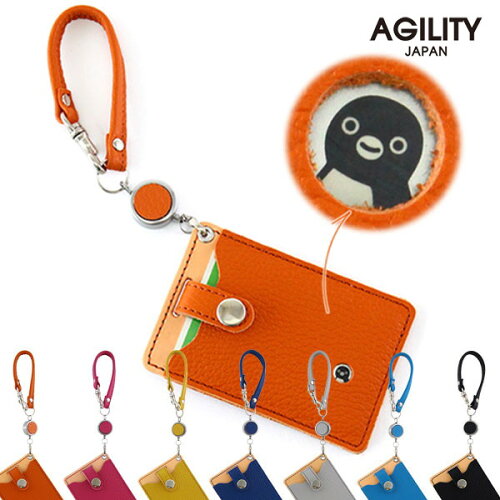 【ネコポス対応】『ピスト』(全7色)イタリアンシュリンク/【パスケース リール付き メンズ レディース 定期入れ リール付きパスケース かわいい IC定期券 カード 落ちない Suica ケース ペンギン 本革 レザー 日本製】【AGILITY affa(アジリティアッファ)】(1601)[M便 3/3]