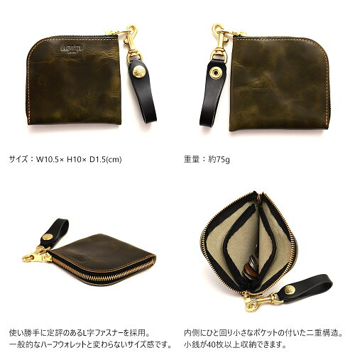 【ネコポス対応】『アルジャンショート』(全6色)キップワックス/【L字ファスナー 財布 コンパクト メンズ レディース コインケース 小銭入れ カードケース ループ付 薄型 機能的 革 本革 レザー 日本製】【AGILITY affa(アジリティアッファ)】(0987)[M便 3/3]