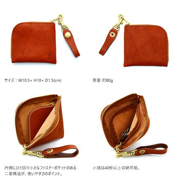 本体はL字ファスナーのポケットが二重構造になっており、内ポケットには小銭が20枚以上収納可能。